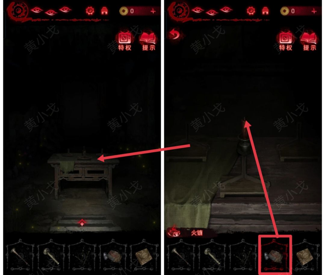 14.(现代-浊门殿)进入浊门殿,触发剧情。点击桌子,用【火镰】点燃蜡烛