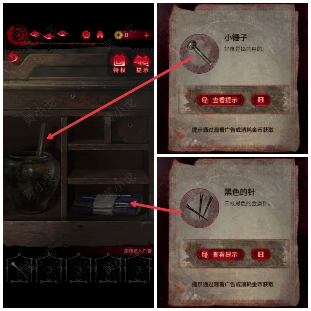 4.打开箱子,获得【小锤子】和【黑色的针】