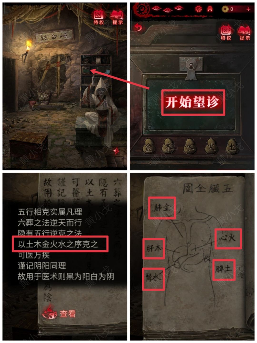 3.点击书架上的箱子,根据《岐黄葬草经》上的线索,完成小游戏(