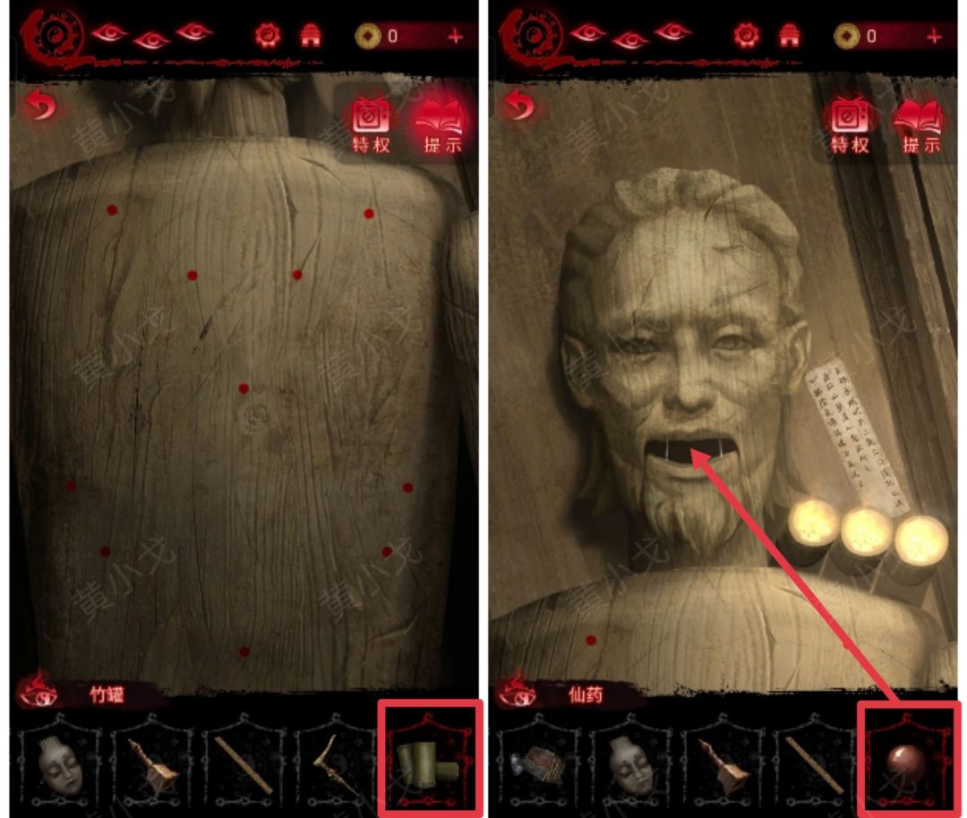 30.放上【竹罐】,把人偶的头转过来,喂人偶吃【仙药】