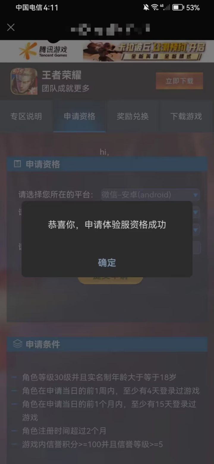 1、王者荣耀(体验服)资格申请实时开放,大家可以随时申请