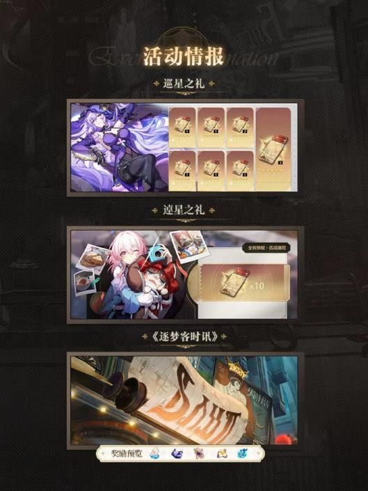 首先就是绝对不容错过的,每个版本必有的登陆十连抽,而在春节版本,老米还将慷慨的在邮箱中,为我们送上额外的十张专票。还有各种有着全新玩法的新活动,还能在自选一只四星角色