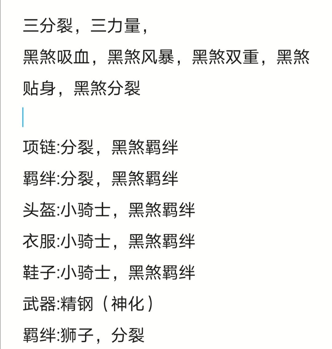 一黑煞分裂,一黑煞吸血,一黑煞贴身,一黑煞风暴,一黑煞双重新星,一黑煞狮子或者武器神化不要黑煞狮子