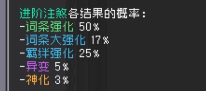 进阶注煞 除了原有的基础上还有5%几率异变,3%几率神化