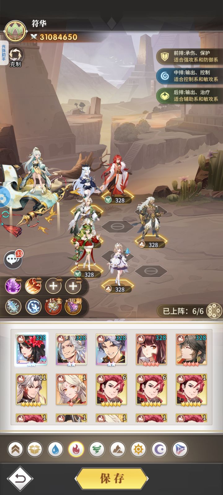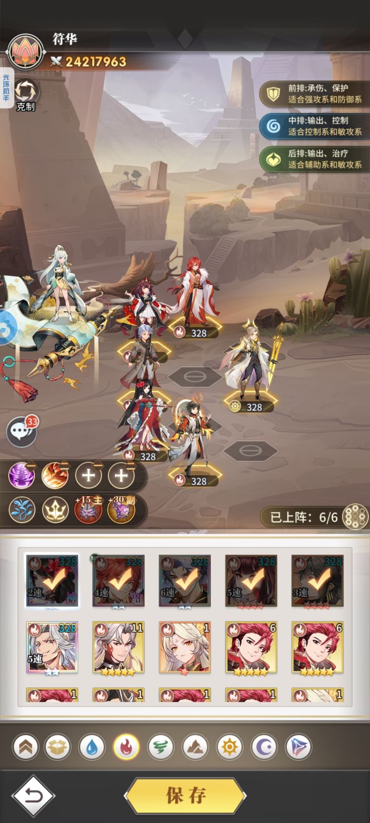 三队(主用于爬塔pvp基本靠前两队):水冰儿小白刚子泠泠海三(有条件可以整个修三)老虎