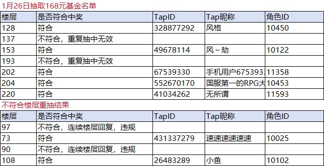 中奖名单丨1月26日【168元基金】中奖结果公示