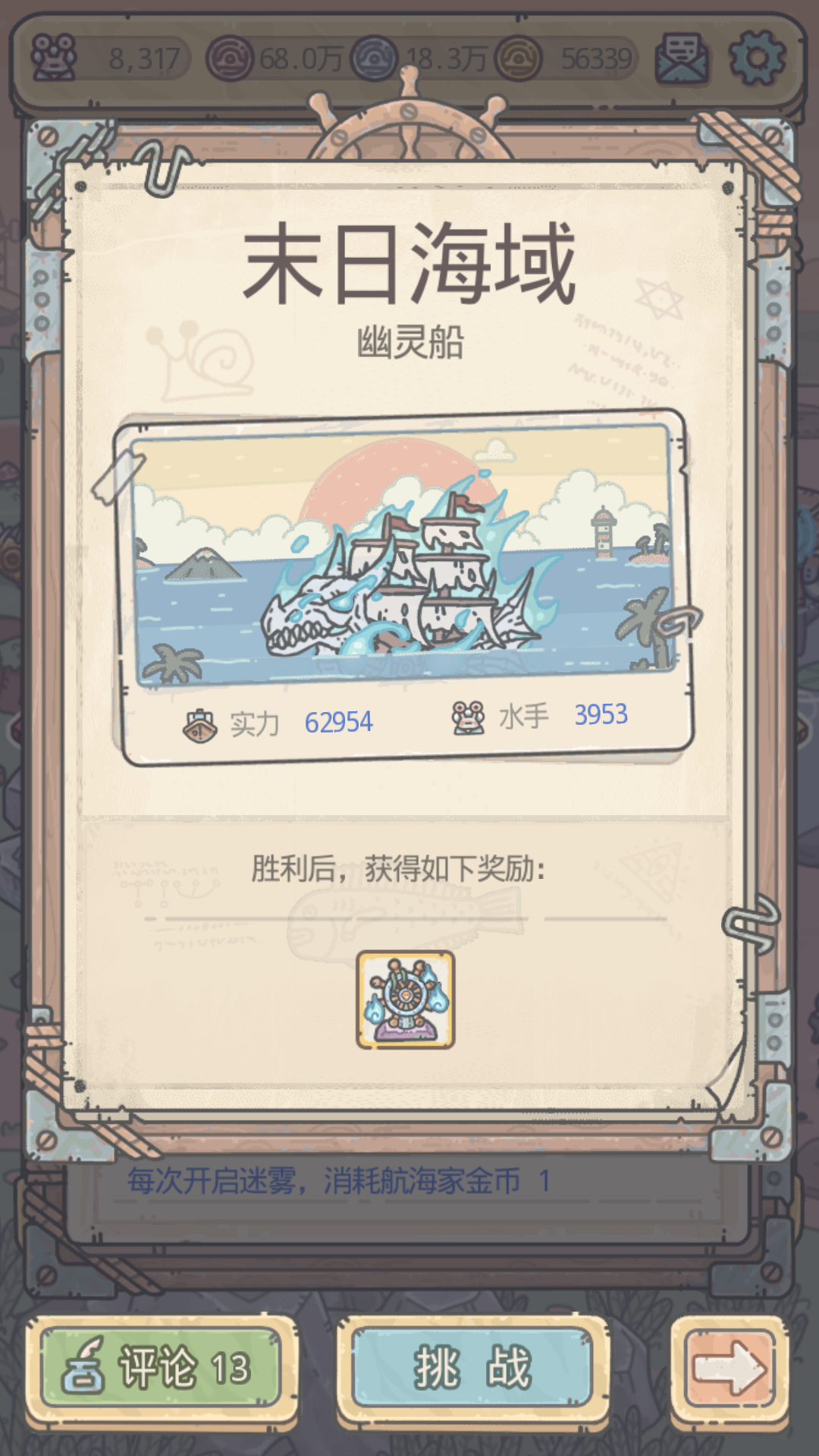 升级需要水手的执念,就是船战死了水手给的那个,不够可以用铜银金三种币换执念(多于情报不知道能不能换,因为银币换完就够了)