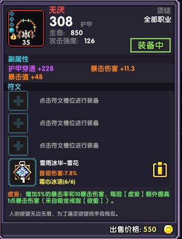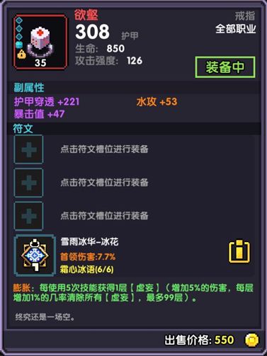 属性选择:暴击值,首领,穿透