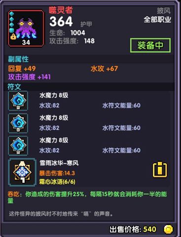 衣服属性:水功,暴击