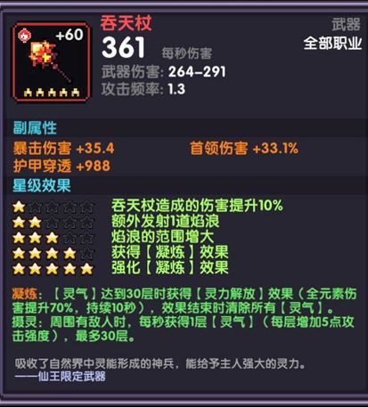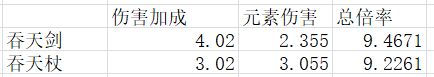 由于吞天系列属性一样,这里只需要比较武器效果