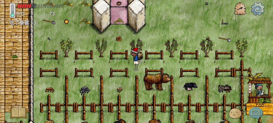 但记住,打开上面的的栅栏就要在最右边的桑葚上面再搞一个能阻碍移动的物品(栅栏,木盒之类的)目的是为了防止野猪跑出来。