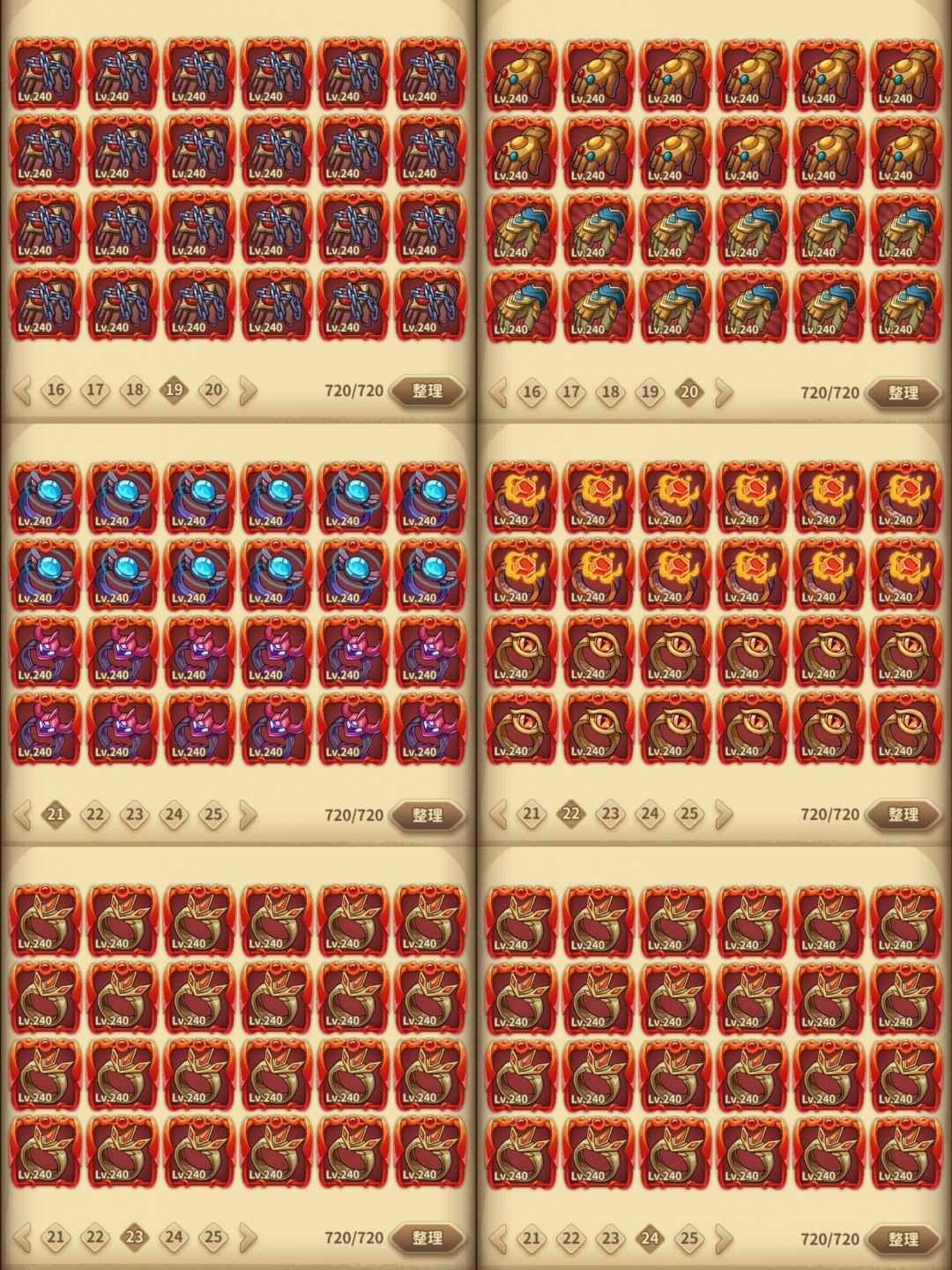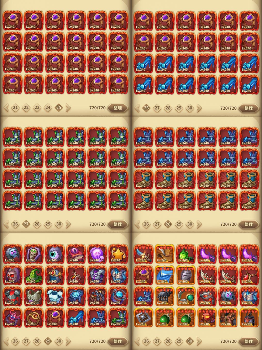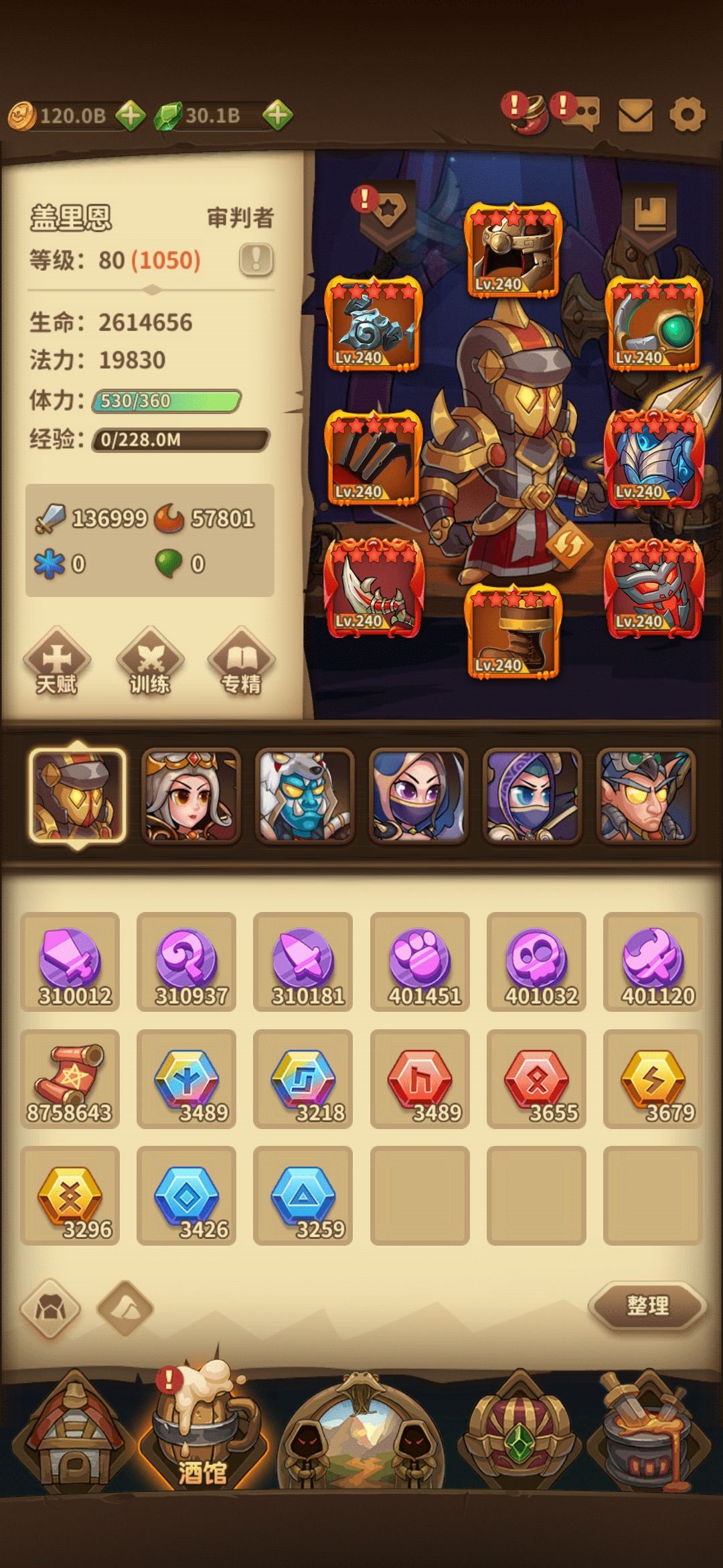 所有神器符文3孔、强化+30、满属性;6个佣兵训练230满级、等级1050满级;27个皮肤全红5。