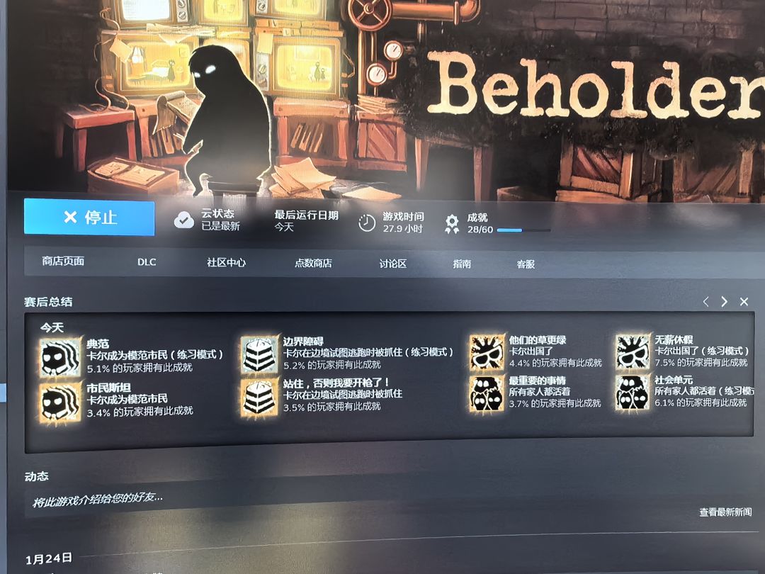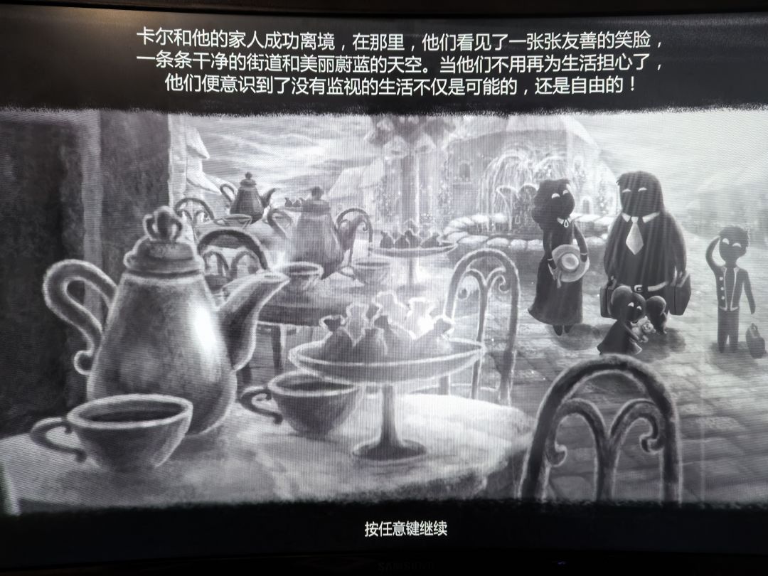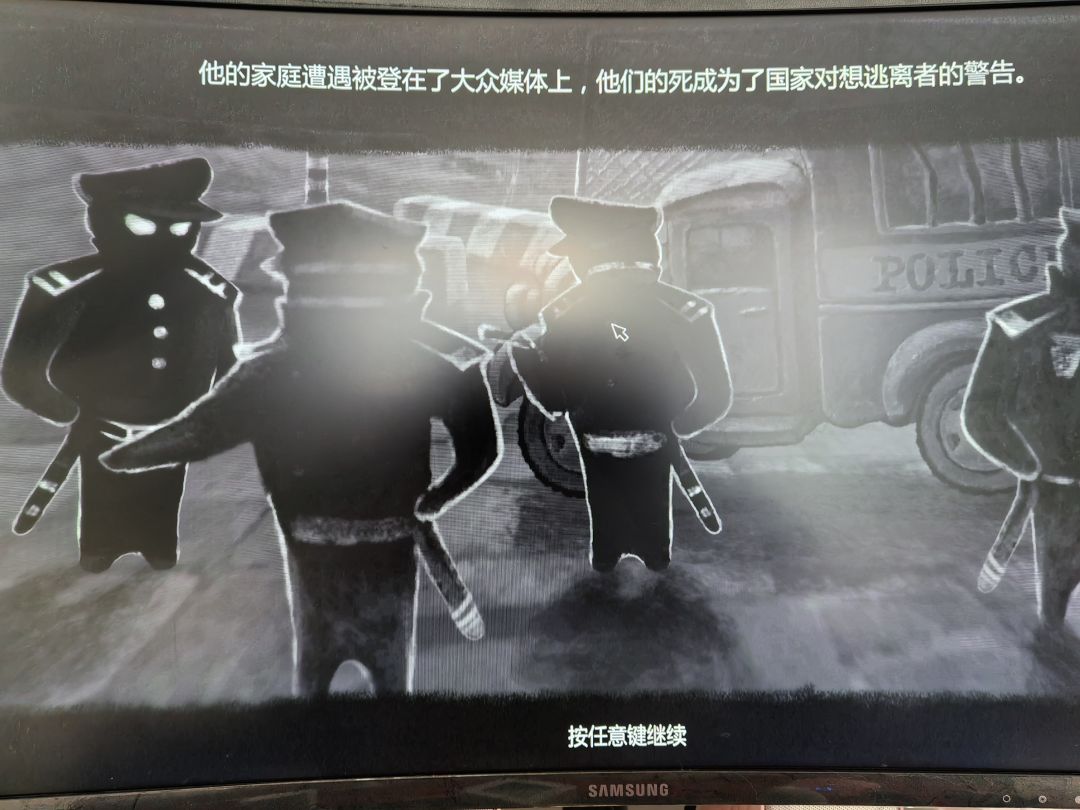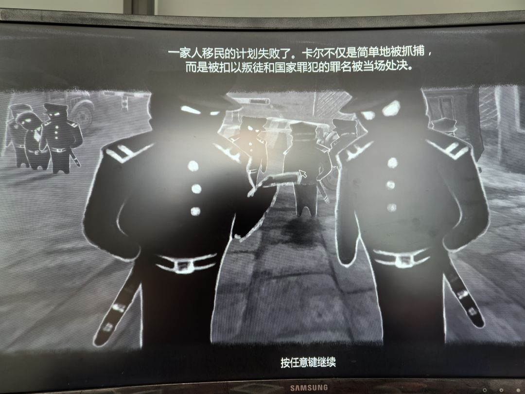 最后出国时如果选择付钱就是合家欢,选择身无分文就是被抓,这结局就很beholder。目前没看任何攻略,看看能打出来多少steam成就。