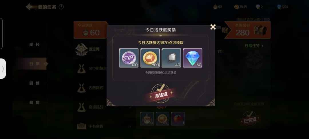 1,首先就是我们的日常任务每天60颗晶钻和一周的周常宝箱一颗抽奖石,由此计算,一个月就是1800晶钻和四颗抽奖石。