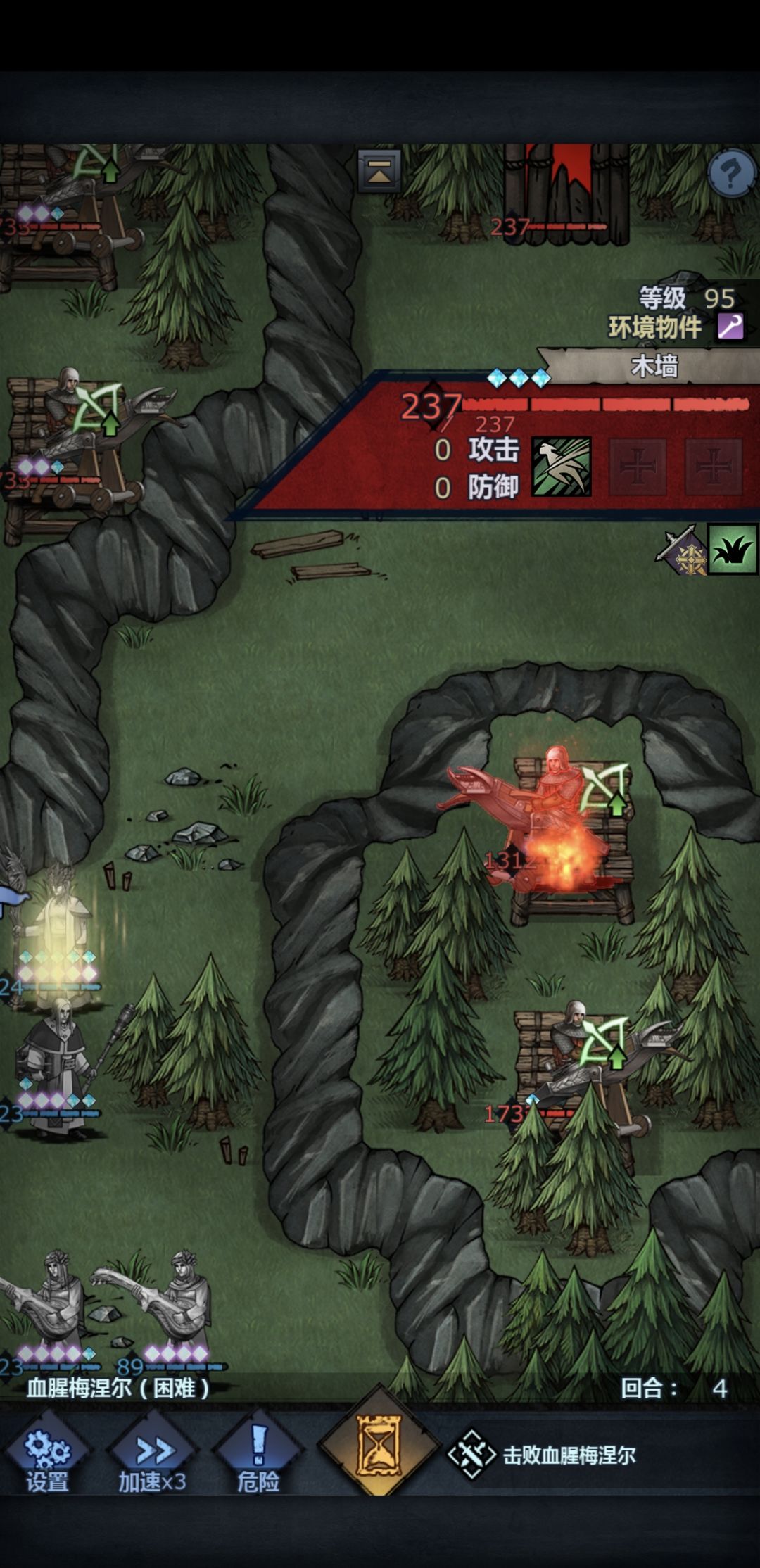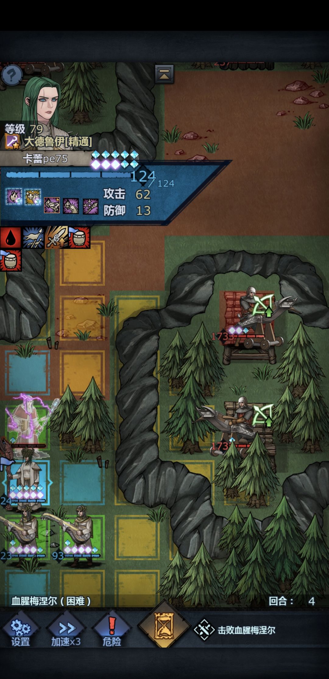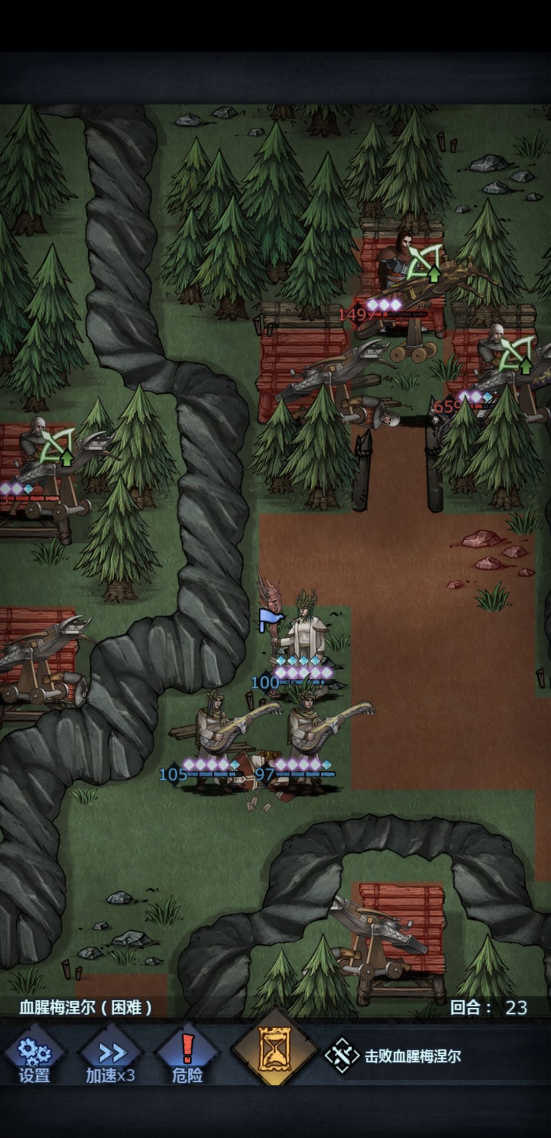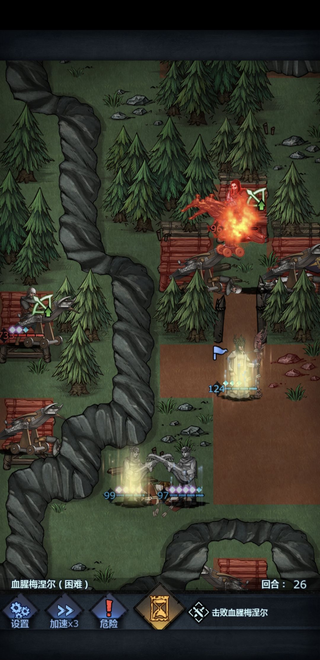 开局叠几下激励,用自然之火处理地图中间偏上的重弩,而地图中间偏下的重弩不会向上走来攻击你。(他只有高贵的一格行动力哈哈)