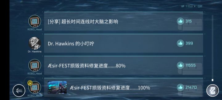 点进图一最下面那条讯息,打完里面跳出来的歌之后视角会从V姐的眼睛逐渐拉远,然后会播放一遍制作人员表,全程不可跳过,只需耐心等待即可,最后会出现“And You”字样,后面有非常短的几句对话,之后就出现了以V姐为背景板的新登录界面,点进去后就可以正常玩了。