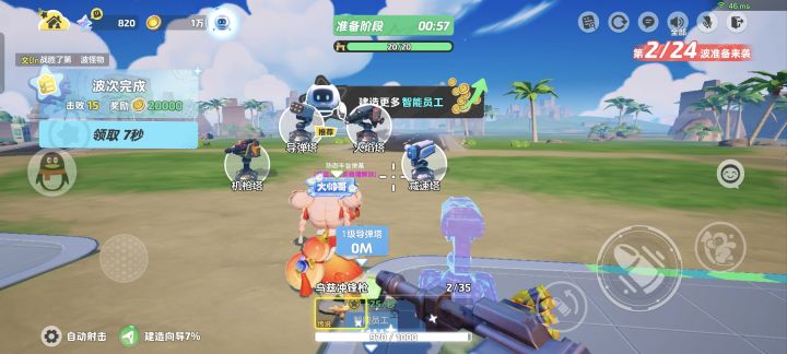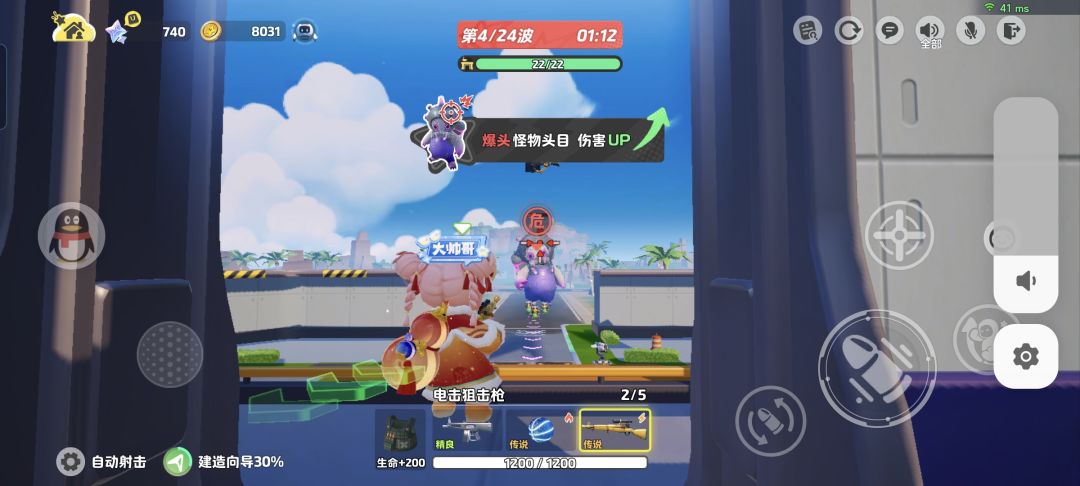三:二楼两边放弃导弹塔选择机枪塔(中后期清扫小怪必备),至于精英怪,自己拿着枪打,第一个大 BOSS 使用(黄金)电机狙 10 枪搞定,搞定后再打小怪。