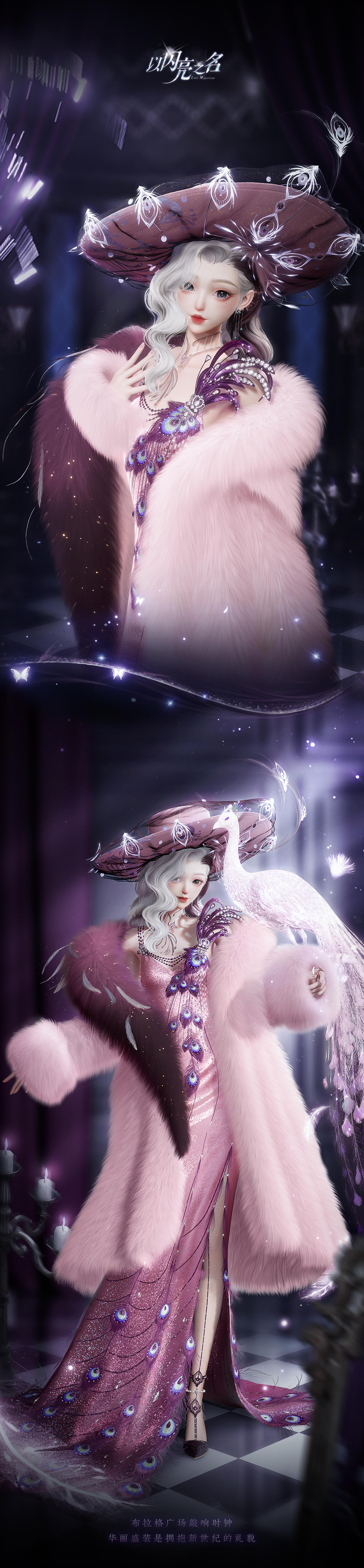 【特殊亮点】🎩手持孔雀为了跟角色更加搭配做了半透设计,运用特殊半透明的材质,使孔雀羽毛在阳光下散发出迷人的光彩。流光特效按照羽毛走势从上而下流淌仿佛羽毛在阳光下的光泽感。此外,为了增加角色的互动性,当角色处于休闲状态时,她会自然地伸出手去,轻轻触碰孔雀的头。这一动作不仅可以展示角色与孔雀的亲密关系,还能让角色更加生动。