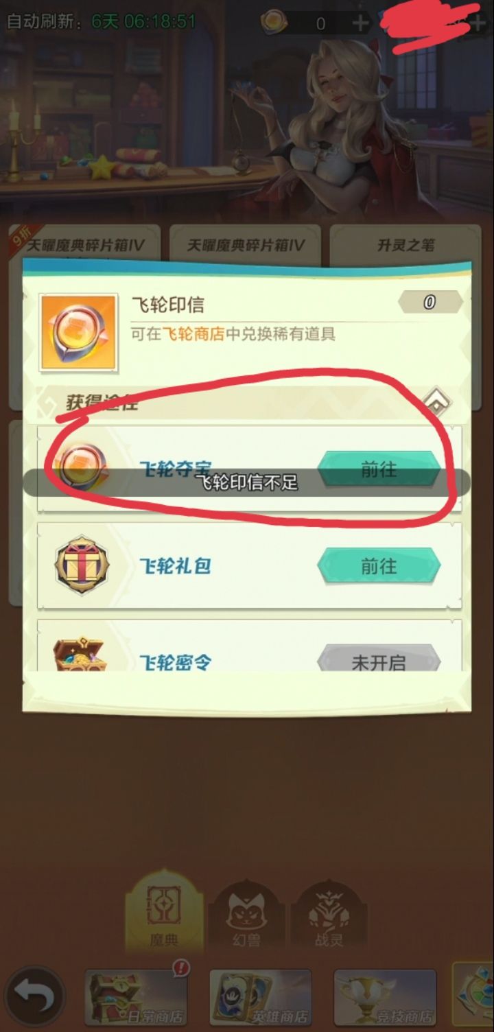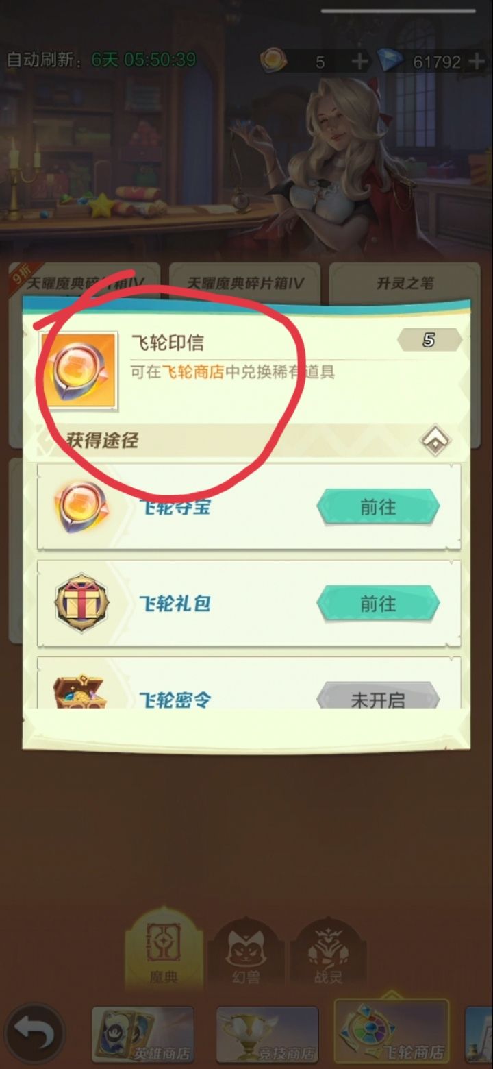 商店每七天刷新一次,可以再次购买180飞轮印信的折扣商品。