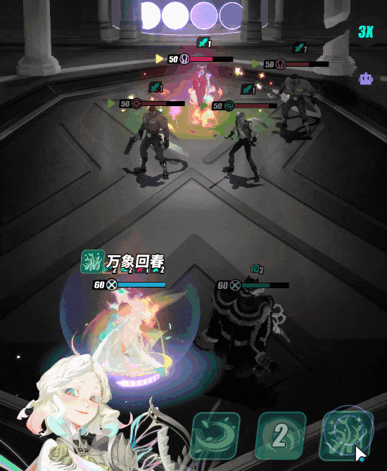 你敢碰我,我必反手一个大逼兜。普攻拉条,技能效果,彩虹护盾:招架第一段伤害,并使用基础技能反击。技能效果,彩虹种子:受到致死伤害,消耗一枚,免除死亡,消除所有减益,并获得额外回合,最多三层。大招可以给全体附加免疫和暴击伤害提升。一个带护盾有免死,一点就着的高爆发狂战士。