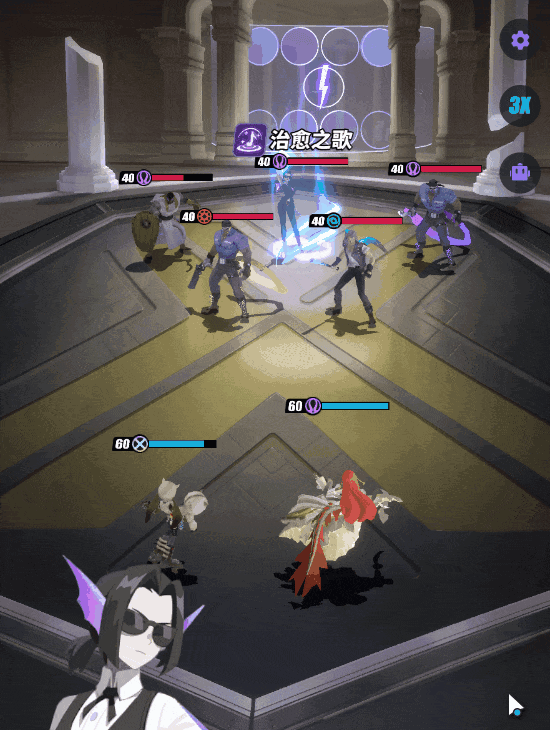 你只要回血,我就暴揍你。这是一个专门针对治疗系的英雄,治疗达到一定次数还会直接释放技能。同时受到debuff技能的英雄,受到伤害增加,行动结束驱散自身增益。前期开荒可针对各种回血得关卡。这个英雄随活动送满共鸣,需要留一点体力来肝活动。