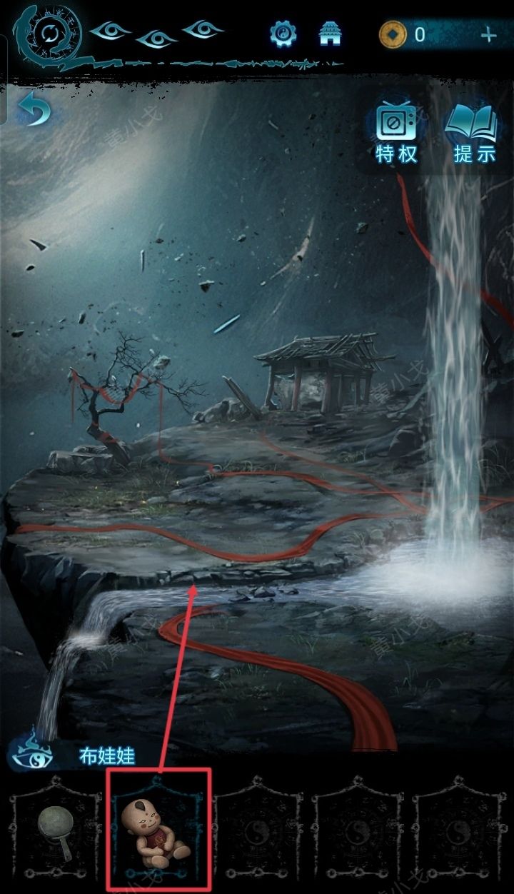 20.(女主-吊桥)点击去到吊桥处。根据木牌上的提示(打生桩需要龙凤一对),埋上两个【布娃娃】,连接吊桥