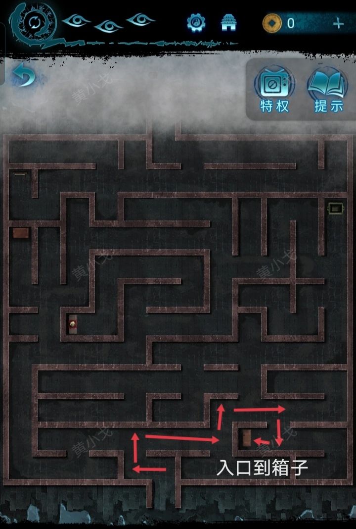 21.(女主-迷宫)根据男主那边的迷宫全景线索,走迷宫到箱子处(路线:左右右直走直走、左右直走右右)(男女主视角切换着走)