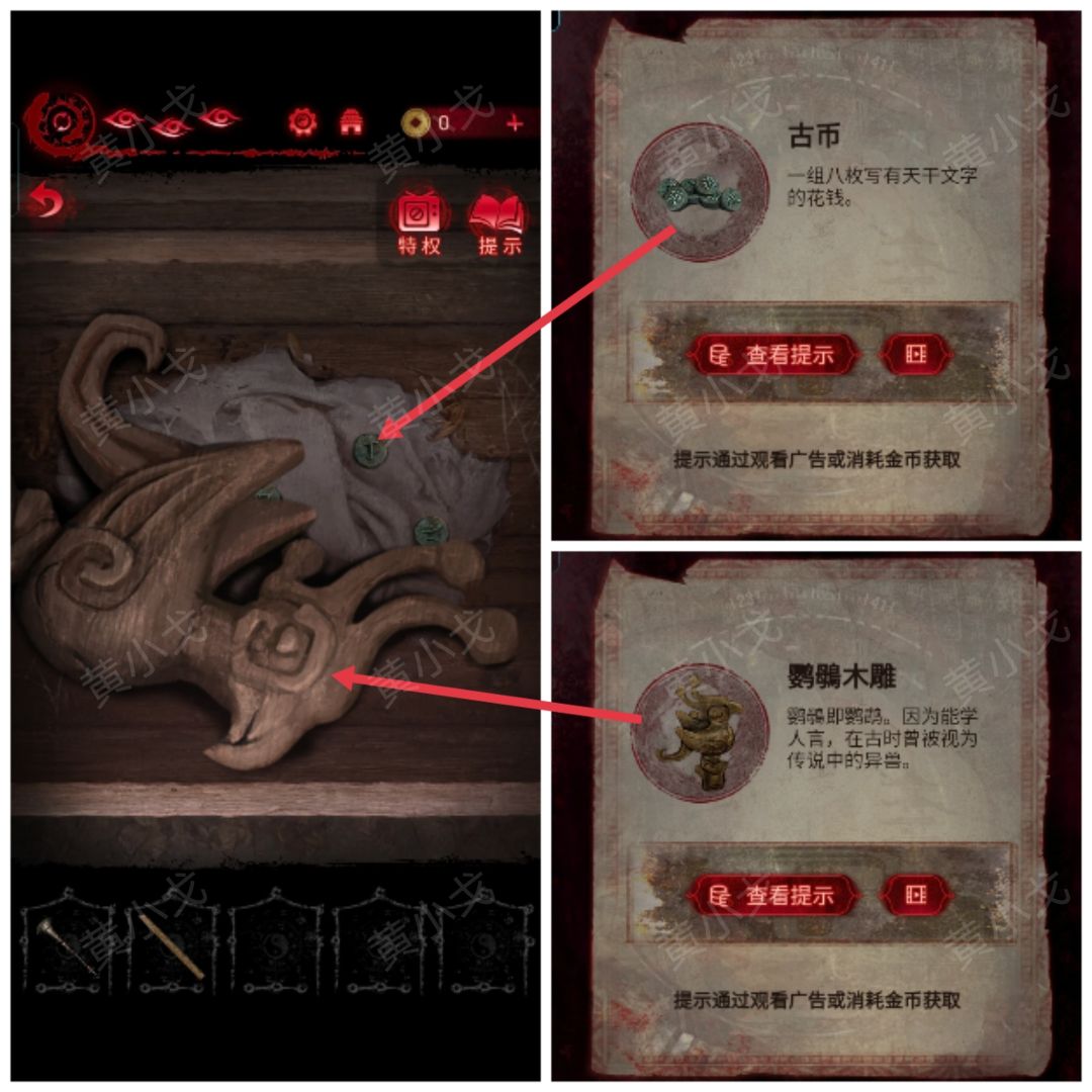 23.打开箱子,获得【鹦䳇木雕】(即鹦鹉)和【古币】