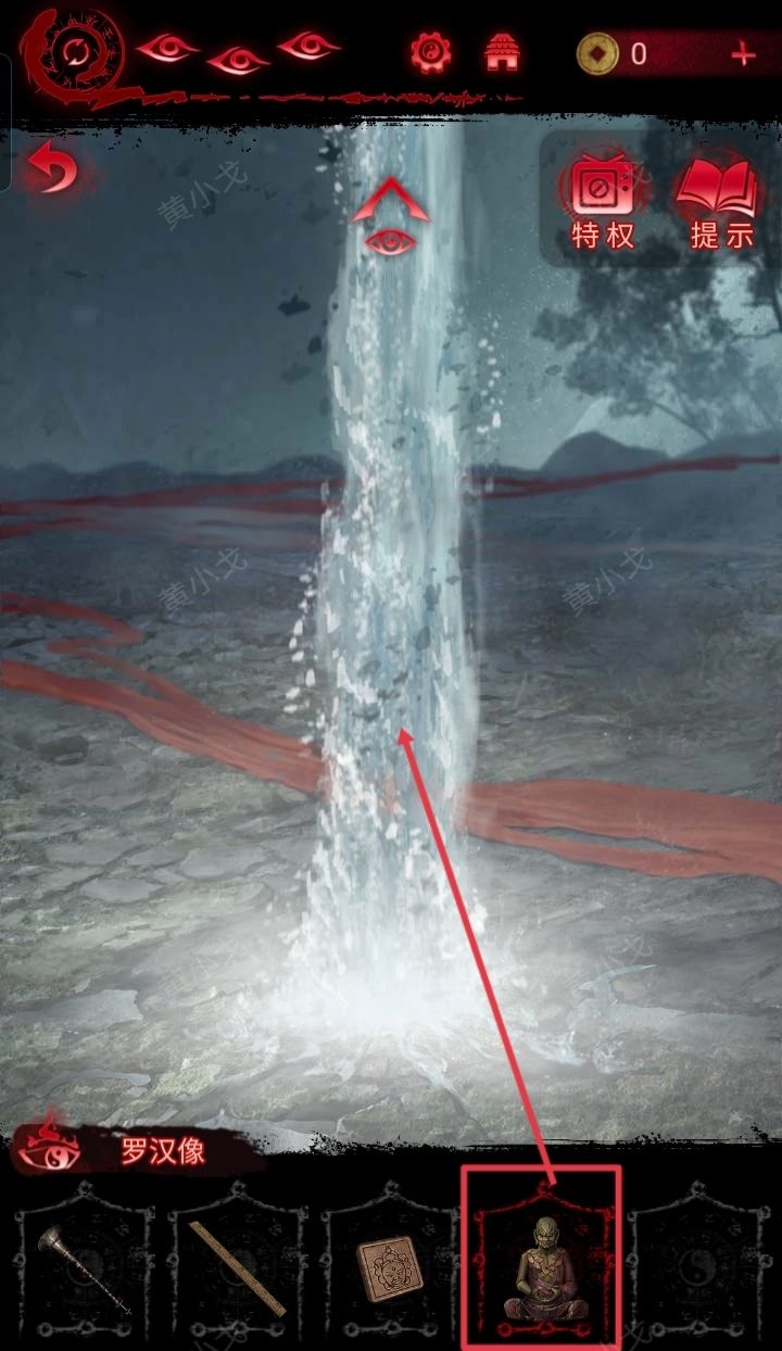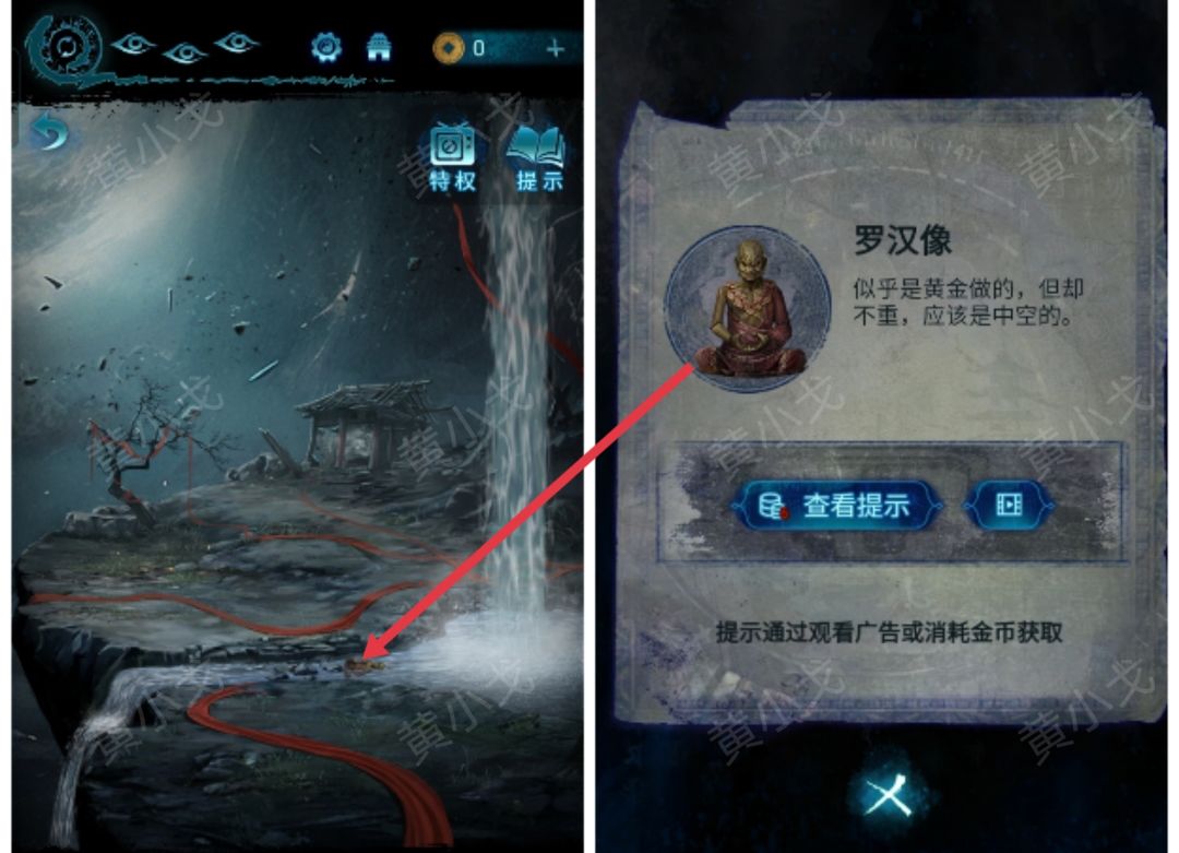 29.(女主-庭院)把【罗汉像】通过喷泉传到男主那边
