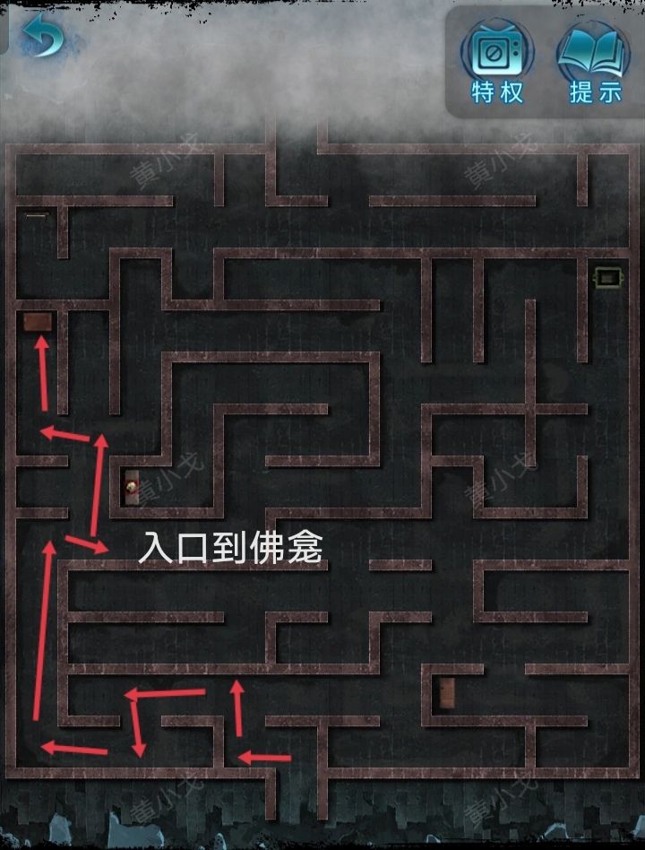 24.根据男主那边的迷宫全景线索,走迷宫到佛龛处(路线:左右左直走左、右直走右直走直走、直走右左直走左、右直走)