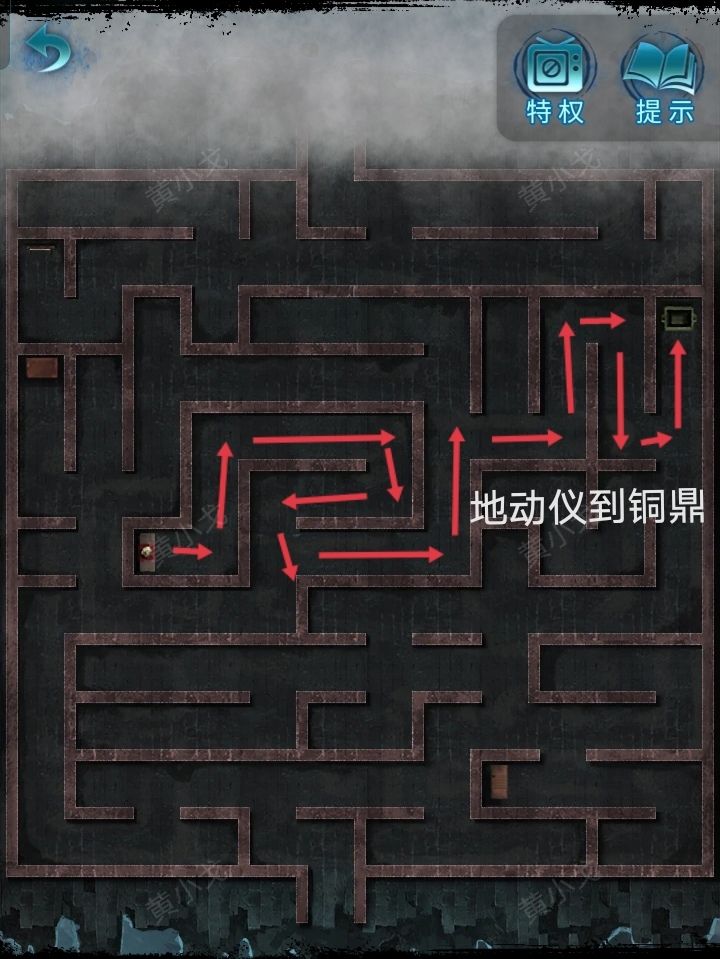 27.根据男主那边的迷宫全景线索,走迷宫到铜鼎处(路线:左直走右直走直走、右右直走左左、直走直走左直走右、直走左直走右左、左直走)(这条路线是从地动仪出来到铜鼎的)