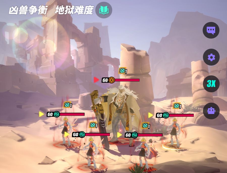 地狱难度追加敌方拥有大幅初始行动值。针对:你带哪些英雄,对面也是哪些英雄,不过可以1人作战,最简单的就是仓颉。其他人可以带光神,慢慢打,比如睡神或者吸血反击月老。