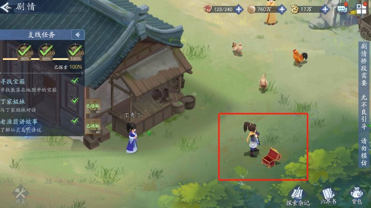 余杭镇右下角,打开宝箱会有老母鸡前来惹事,不让你开宝箱