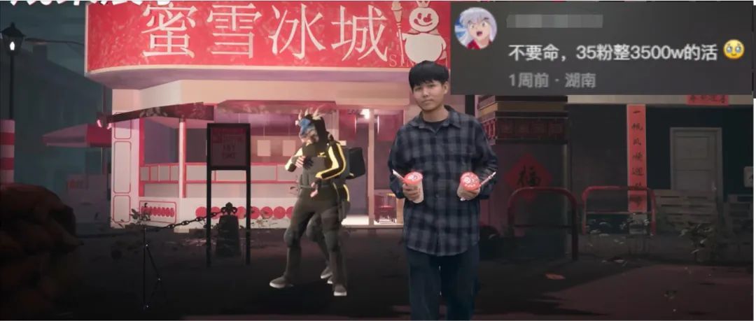 虽然是受到游戏的启发,但带着年轻人特有的大开脑洞,他们当然不准备1比1复刻场景,而是要做出中国人特有的新春年味出来。什么兰州拉面、蜜雪冰城统统安排上,唤醒来自中国人血管里的记忆。