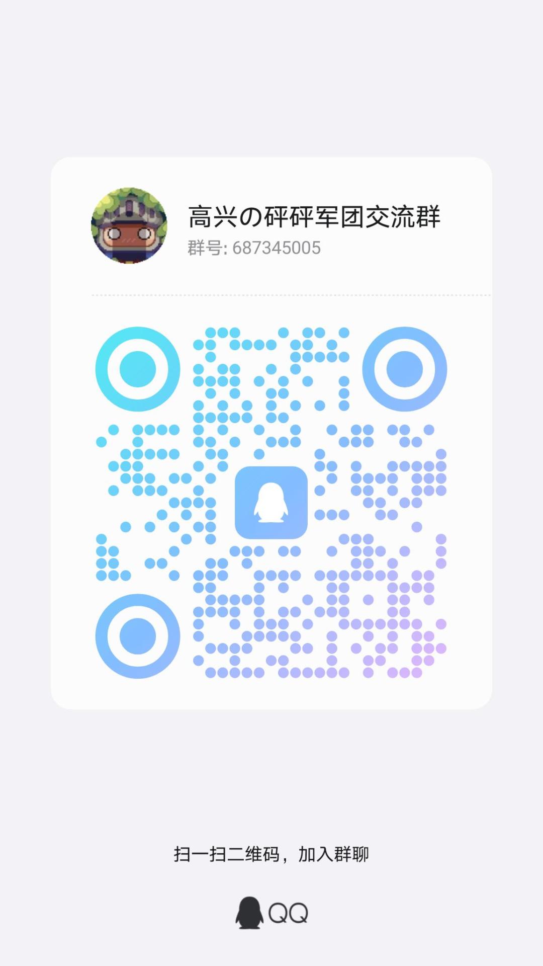 点击链接加入群聊【高兴の砰砰军团交流群】:http://qm.qq.com/cgi-bin/qm/qr?_wv=1027&k=WmNZ_fJwJ2vLM1oEtKVwOtGsz2oapKB9&authKey=2nrz33iugr4SM1ieDO9hkEbEp23poYAq4CHDZnqj7iflopKv1U1XgRF9WWsYFraR&noverify=0&group_code=687345005