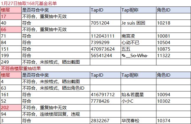 中奖名单丨1月27日【168元基金】中奖结果公示