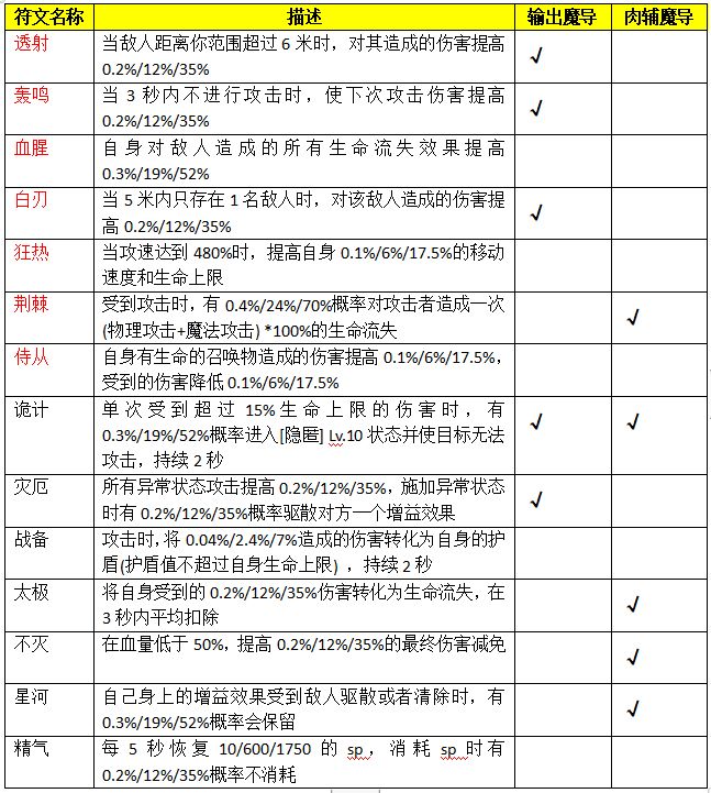 符文说明:PVE/PVP/GVG输出向核心符文,数值越高越好