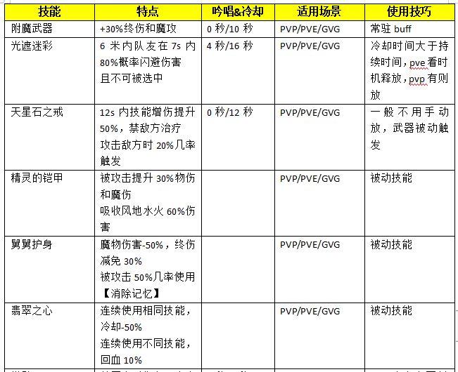 2.5 一张表解析魔导技能技能特点吟唱&冷却适用场景使用技巧