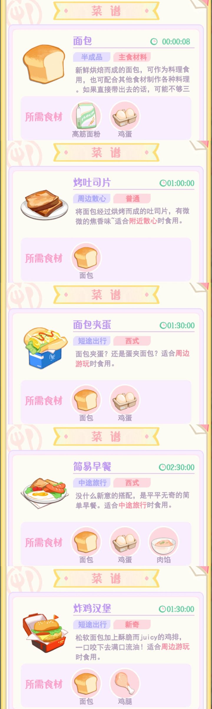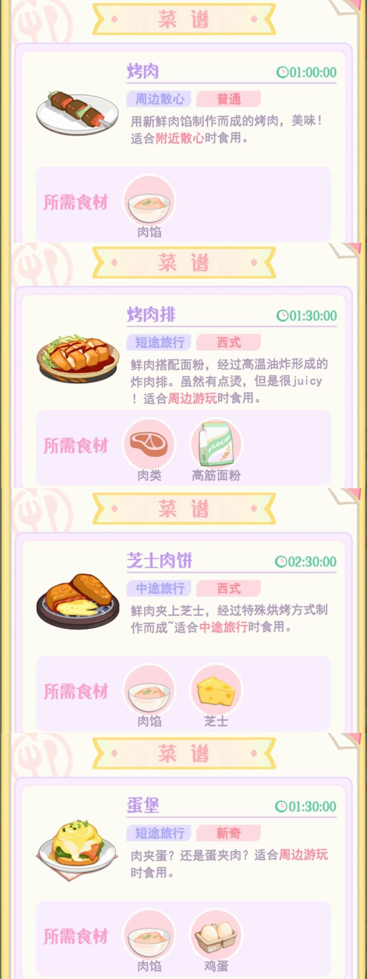 目前收录的菜谱大概分 5类——