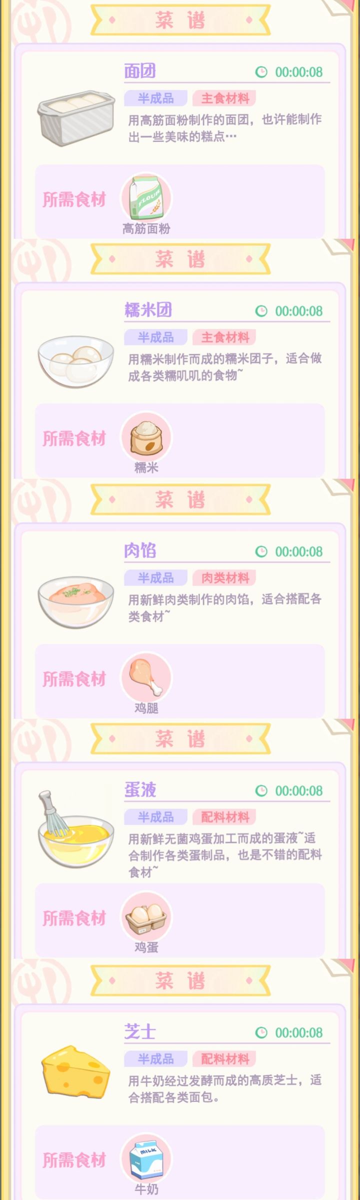 版本更新后的出的菜谱见图6、7。