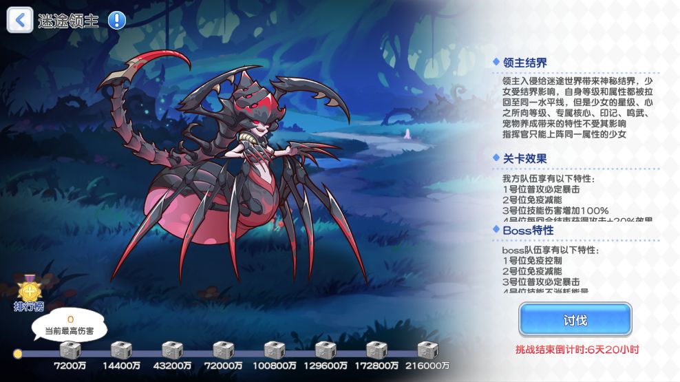 挑战世界boss时,指挥官拥有的少女攻击/防御/生命 属性将被拉平。