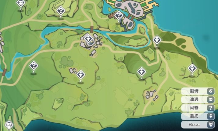 已开放区域上分布着五种类型的事件:剧情、遭遇、问答、委托、Boss,指挥官点击事件即可进行探索。