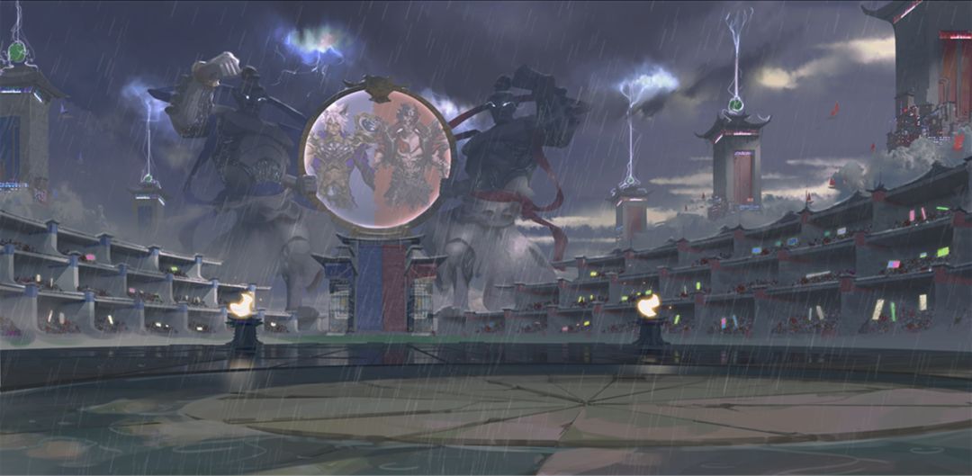 最后,我们充分保留了武侠文化的精髓,加入太极两仪等设计,配合中式的建筑材料和风格营造一个弘大的会场,又创造性地加入机械空艇等元素,融入了当今时代大众较为熟知的工业风格,将古典风范与现代魅力完美融合,打造出了“超越感”十足的全新皮肤。
