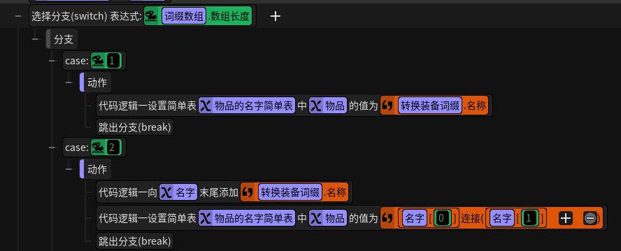 装备名称组合方式,词缀为“持有”词缀,在创建装备添加词缀的时候进行保存词缀名称。