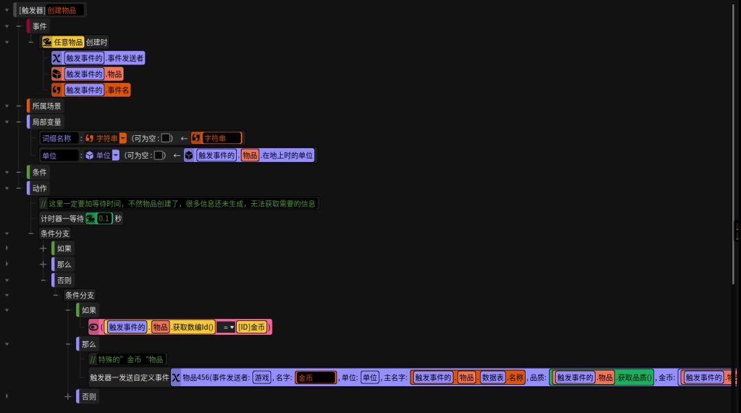 在服务端触发编辑器里单位死亡时,创建金币的时候,在物品上保存金币数量任意值。等待0.22秒是为了解决近战击杀怪的时候金币创建了会立马就被玩家获取了,因为金币设置的是300范围自动拾取,用等待的时间让其任意值进行保存完成。