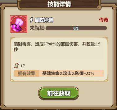 技能解析:眩晕作为冒险途中S级控制技能,释放后可以使敌方无法行动,百分百眩晕的能力更是推图副本和竞技场的绝佳技能。