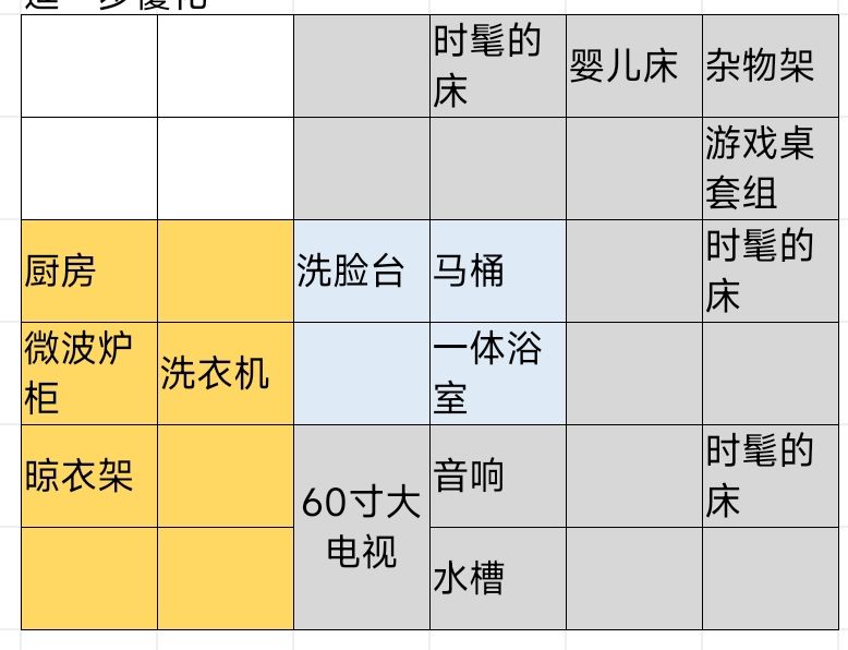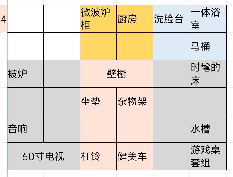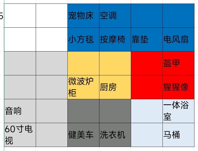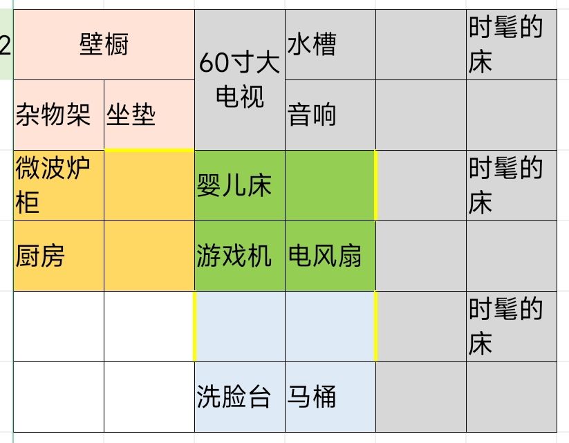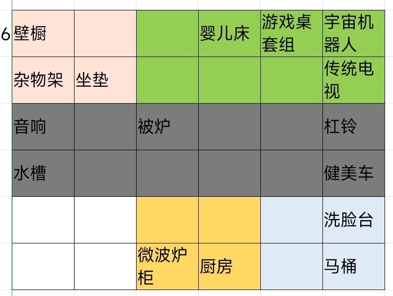 排除以上3个擅长,我们16个家具总共能空出5个家具放床了。