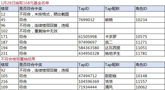 中奖名单丨1月28日【168元基金】中奖结果公示