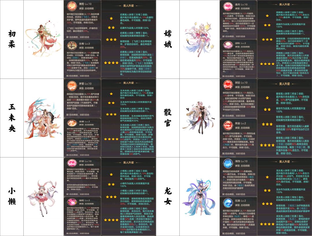 各美人立绘-技能-升星效果一览