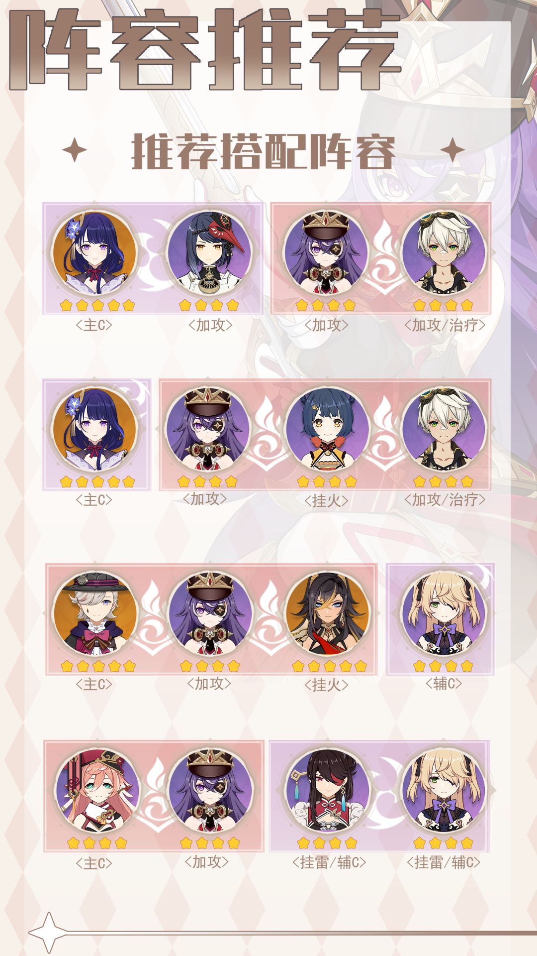 一个非常实用的超载队辅助,抽雷神与宵宫时顺手捞就好,不用特意去捞,0命就能直接上场用,培养成本也低。
